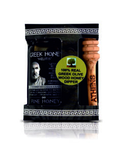 PINE HONEY 120GR WITH HIPPOCRATES LABEL+ WOODEN HONEY DIPPER IN GIFT BOX