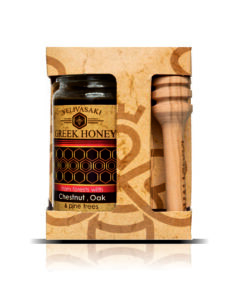 ORANGE BLOSSOMS HONEY 120GR WITH VELIVASAKI LABEL + WOODEN HONEY DIPPER IN GIFT BOX