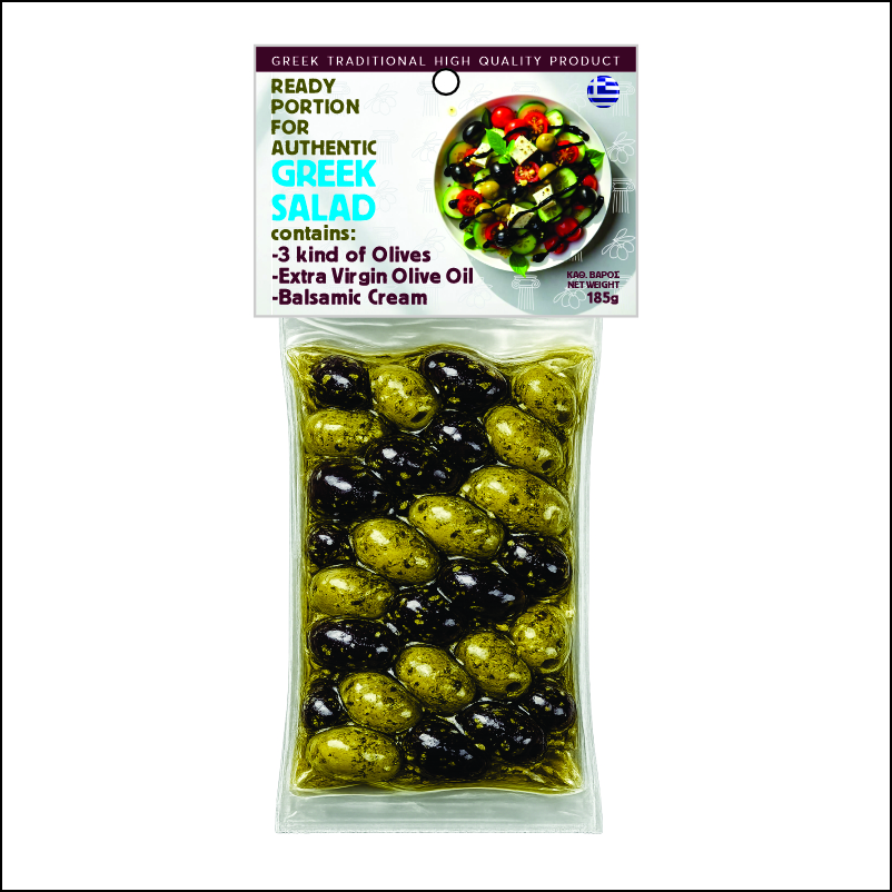 OL203 – ΕΛΙΕΣ ”GREEK SALAD” ΜΕ ΒΑΛΣΑΜΙΚΟ– VACUUM 185ΓΡ