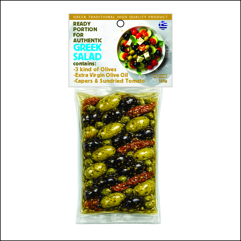 OL204 – ΕΛΙΕΣ ”GREEK SALAD” ΜΕ ΛΙΑΣΤΗ ΝΤΟΜΑΤΑ & ΚΑΠΑΡΗ – VACUUM 185ΓΡ